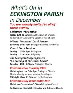 Although we are still in November we thought we would give you advance notice of several events planned at both churches for the period leading up to Christmas. See our poster below.